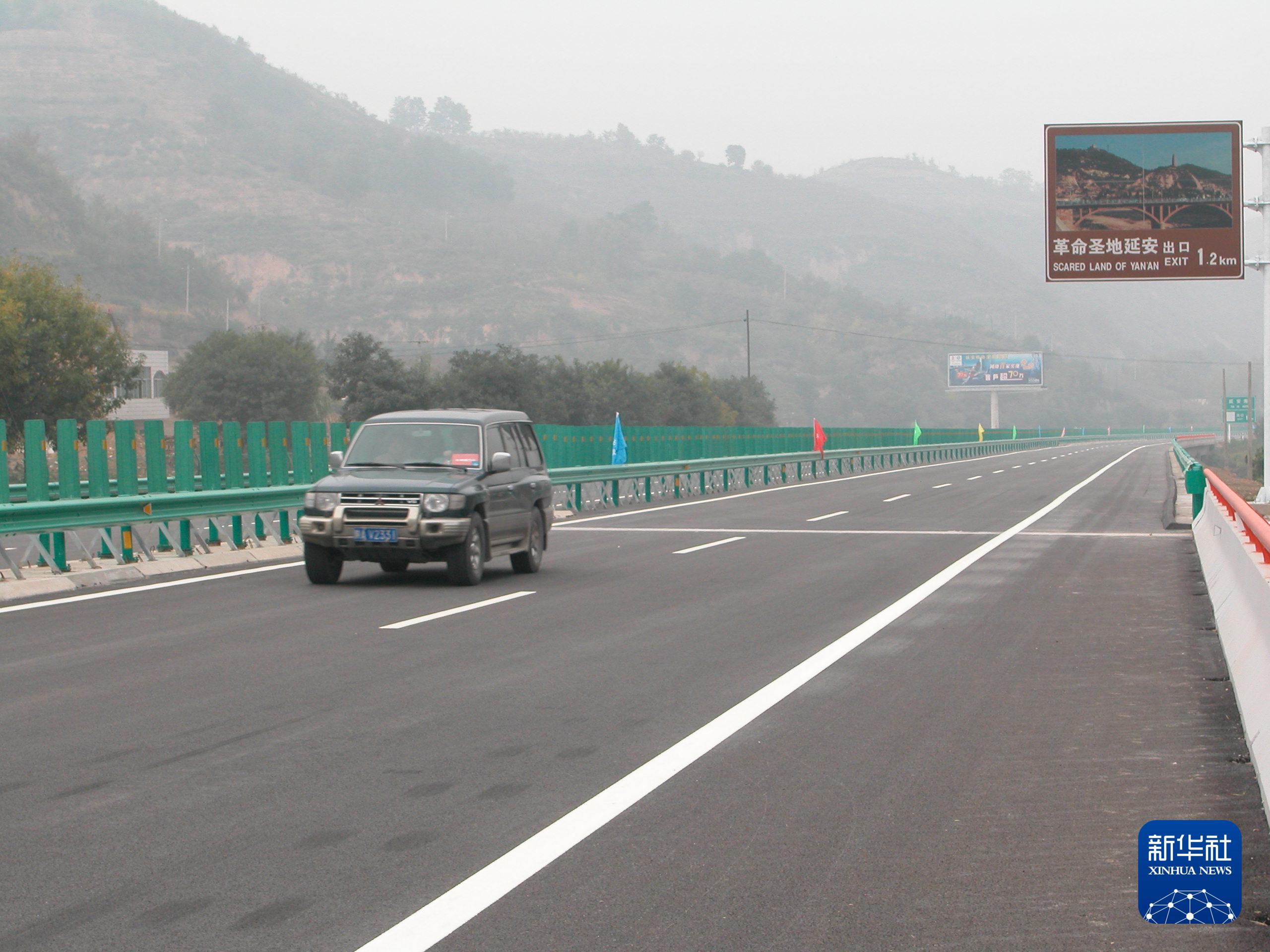 2006年9月30日,一辆越野车在新建成的黄延高速公路延安段行驶,通车之后从西安到延安驾车只需3小时。新华社记者 石志勇 摄