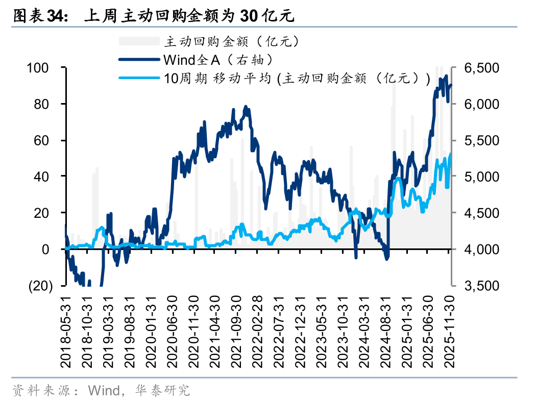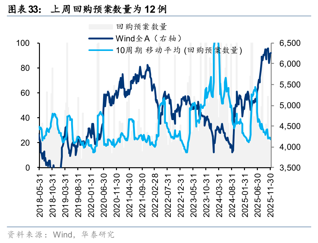尽管交易性资金尚未回暖,但增量资金近期仍处于“下有底”的状态,原因在于近期逆势资金强度有所回升:1)主动回购(多为注销式及为了维护股东权益)数目上周环比增多;2)宽基ETF上周净流入83亿元,已连续两周净流入,方向以中证A500为主。