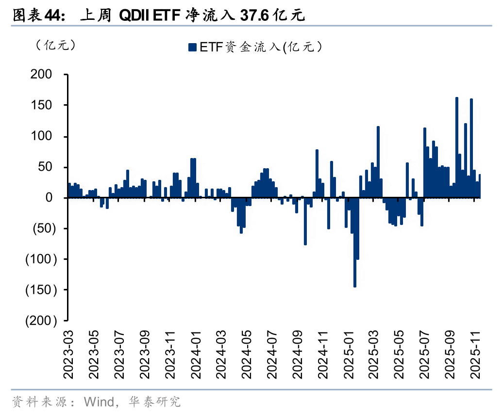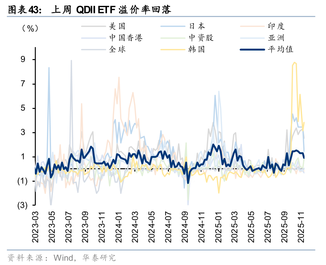 QDIIETF上周净流入37.6亿元,主要净流入中国香港。从溢价率来看,QDII ETF溢价率环比回落。
